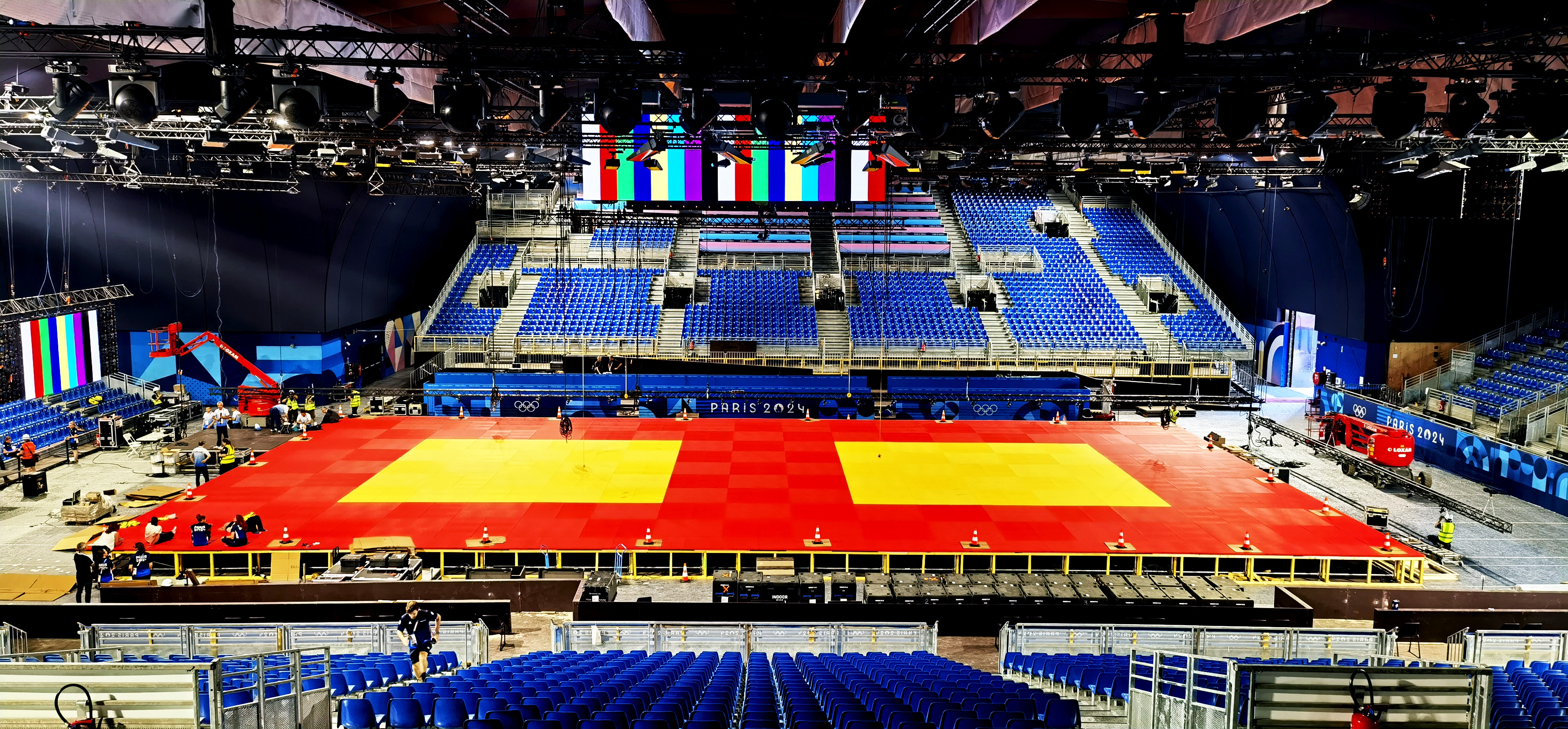 威客电竞的专业安装团队以满腔热情和高效执行力,致力于柔道与摔跤比赛场馆的设备安装工作。在本届奥运会上,威客电竞不仅提供了高品质的产品,还特别派遣了核心工程师团队。这支团队凭借多年的国内外大型赛事服务经验,确保每一环节的安装工作均满足国际顶级赛事的严格标准。